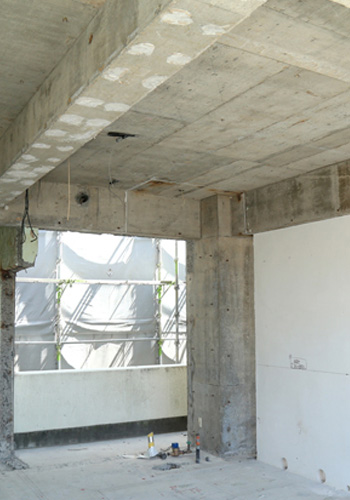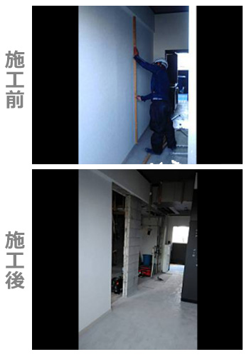 床、壁や天井の石膏ボード、配線、必要であればコンクリートなどの一部を壊し、最終的にスケルトンとよばれるコンクリートだけの状態にします。