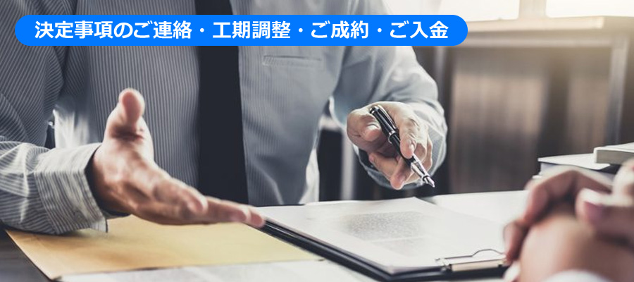 この時点でご成約成立となります。その後、指定期日までに工事着手金をご入金いただきます。