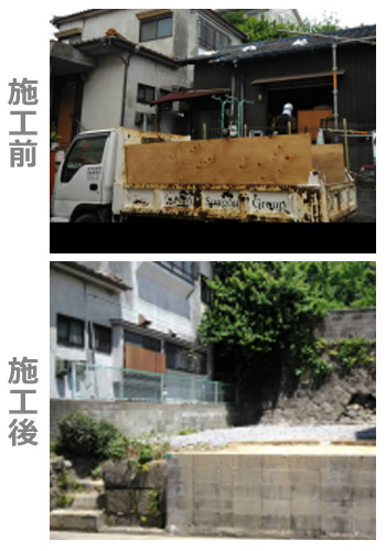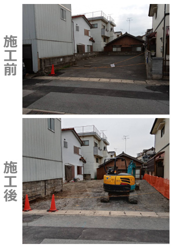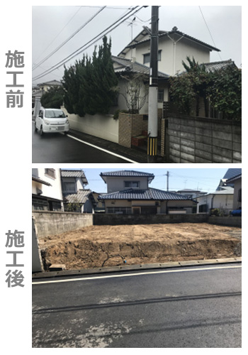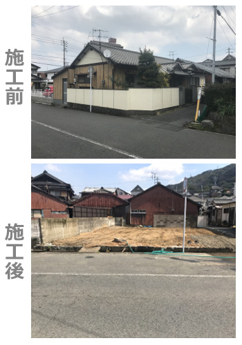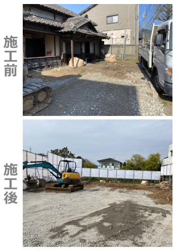 木造の一般家屋から、店舗、工場などの構造物を解体する工事です。建物を壊して基礎を取り、整地した後は最終的に更地にします。