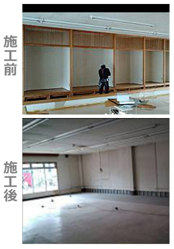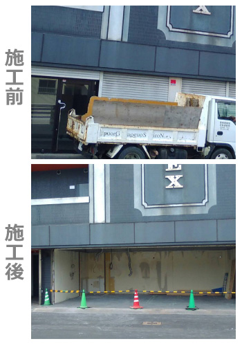 コメント 小倉北区にある某ビル。その1階にあるテナントフロア解体のご依頼でした。壁全体の壁紙剥ぎ、天井と壁の石膏ボード、天井裏のLGS(軽量鉄骨材)の解体撤去やキッチンやトイレの撤去。エアコンなどの大型家電の移動やシャッターの解体もさせていただきました。歩行者の多い通りでも有り、通行される方々の安全に配慮して工事いたしました。